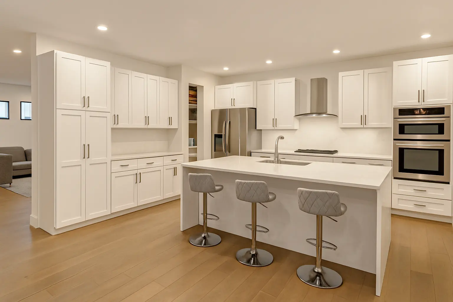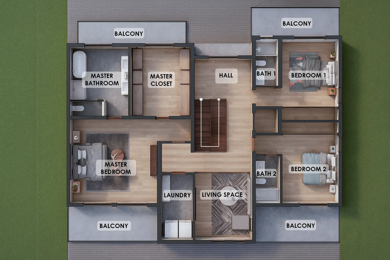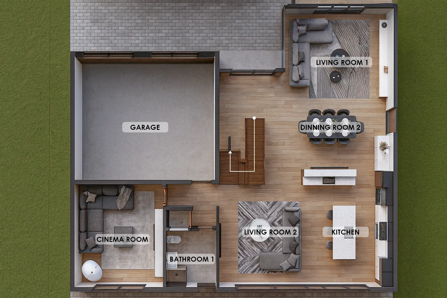 The Harmony Pro features four generously sized bedrooms and four full bathrooms, making it ideal for families who value space and privacy. The modern kitchen is designed with a central island, perfect for everyday cooking and entertaining. Multiple living areas, including an entertainment room and a secondary living room, provide flexibility for gatherings, relaxation, and daily life.