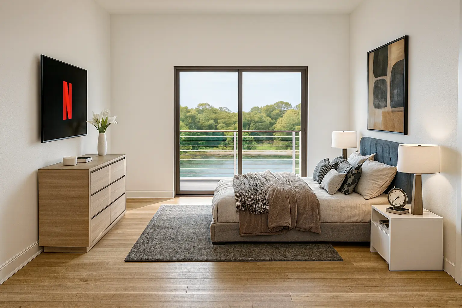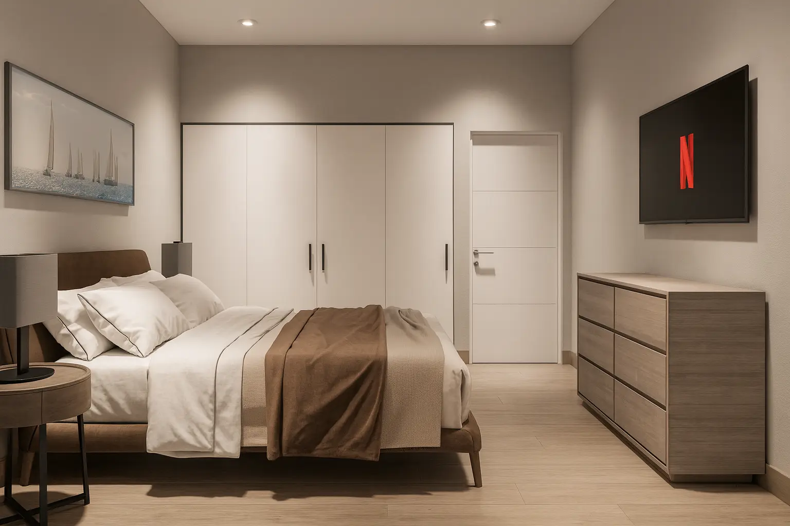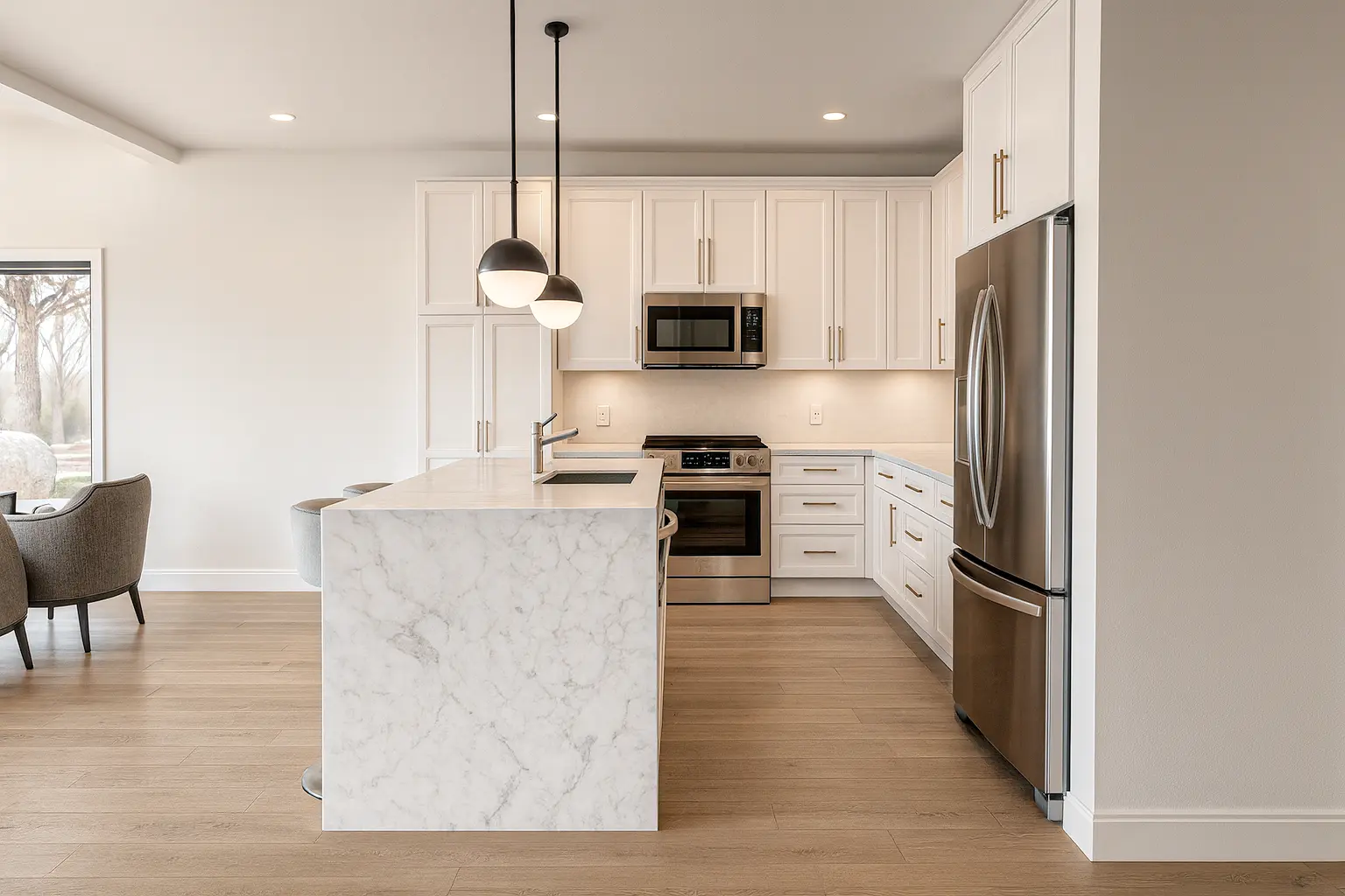 The Nest Pro features 3 bedrooms and 2 bathrooms, making it ideal for families or professionals seeking extra space. The modern kitchen, complete with a spacious kitchen island, is perfect for cooking and entertaining.