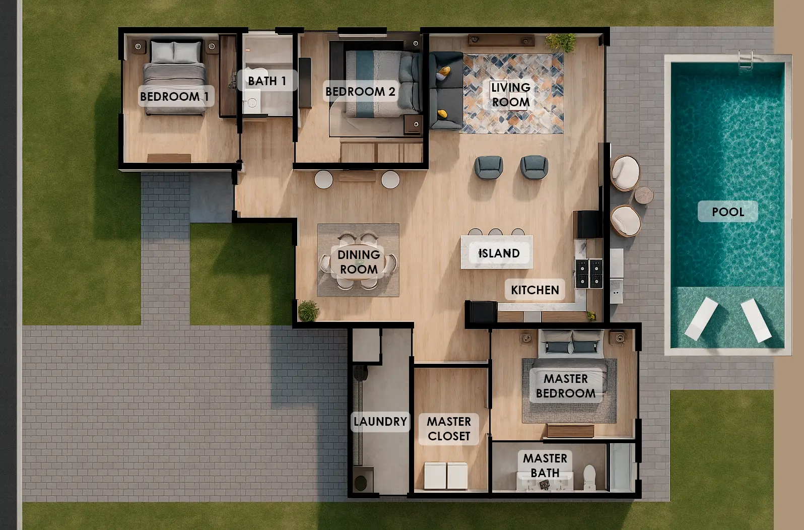 Introducing the Nest Pro, offering 1,489 sq. ft. of living area and approx. 1,892 sq. ft. of total construction. This beautifully designed home is perfect for modern living, combining comfort and convenience in every detail.