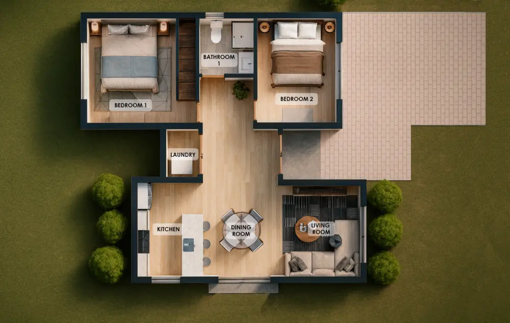 Welcome to the Casita, a thoughtfully designed compact home that delivers comfort, style, and efficiency without wasted space. Offering 723 sq. ft. of livable interior space and 824 sq. ft. of total construction, this modern 2-bedroom, 1-bathroom home is ideal for individuals, couples, or small families looking for a practical yet elegant living solution.